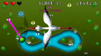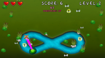 Our frog is stuck in an eternal river loop with nothing to do in this boring swamp except feed. The circular current traps him in endless cycles, but at least the flies keep coming! Turn this watery prison into a high-score paradise.